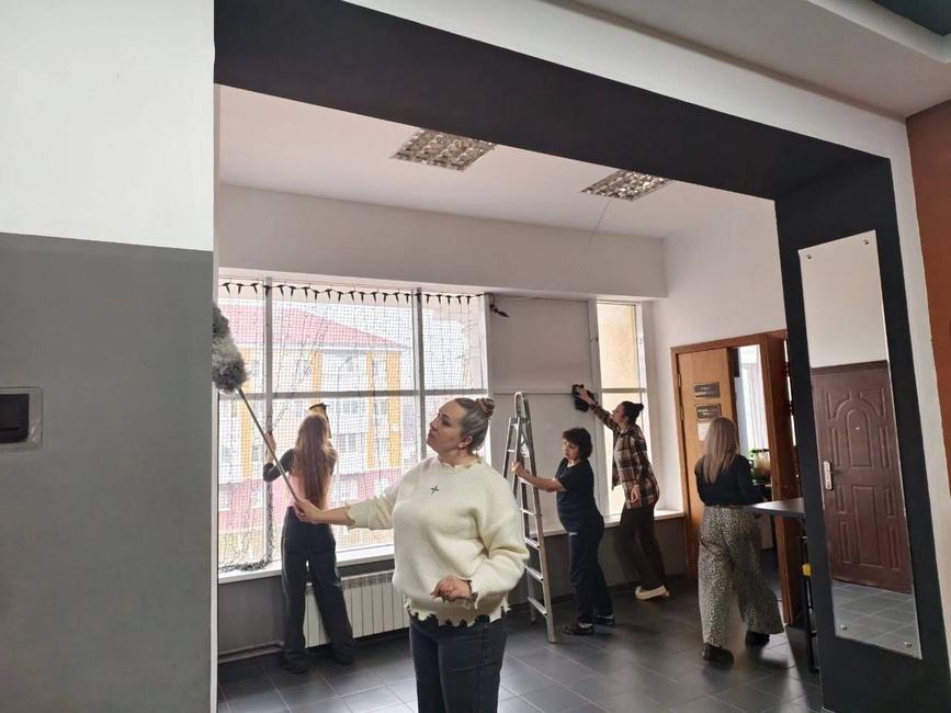 Но главная сцена действий — конечно, сами учреждения. В Центре культурного развития «Борисовский» устроили настоящий переполох чистоты: всем коллективом, дружно, в помощь техническим работникам вытирают пыль даже в самых укромных уголках и моют окна так, чтобы весеннее солнышко на них играло.
